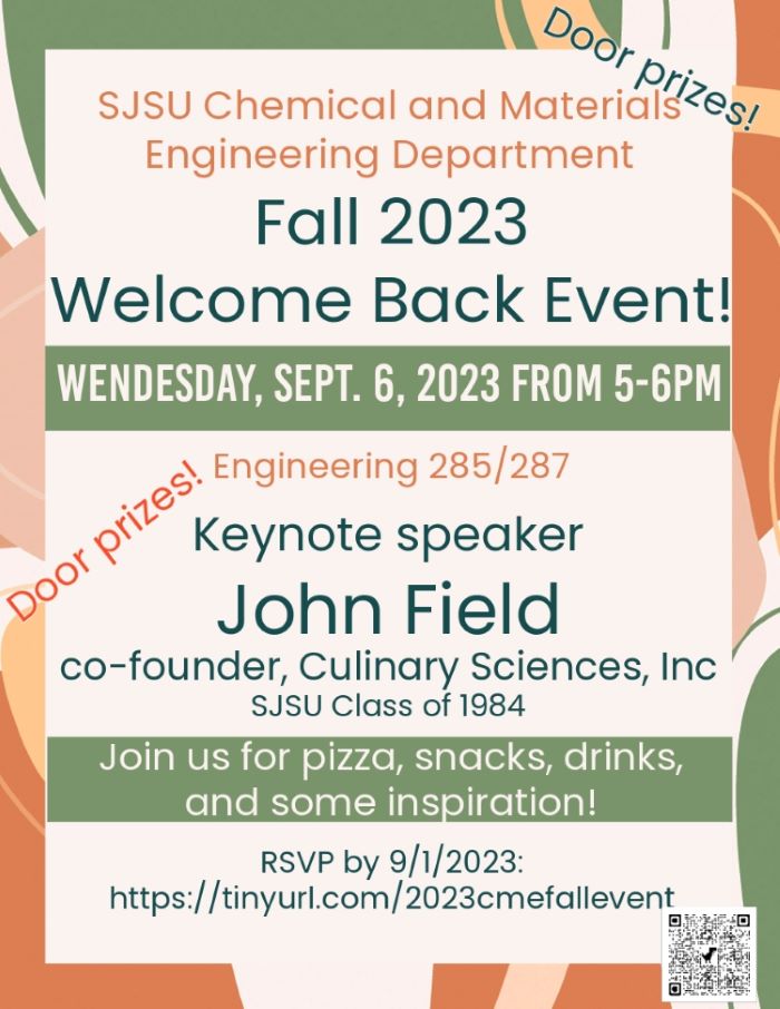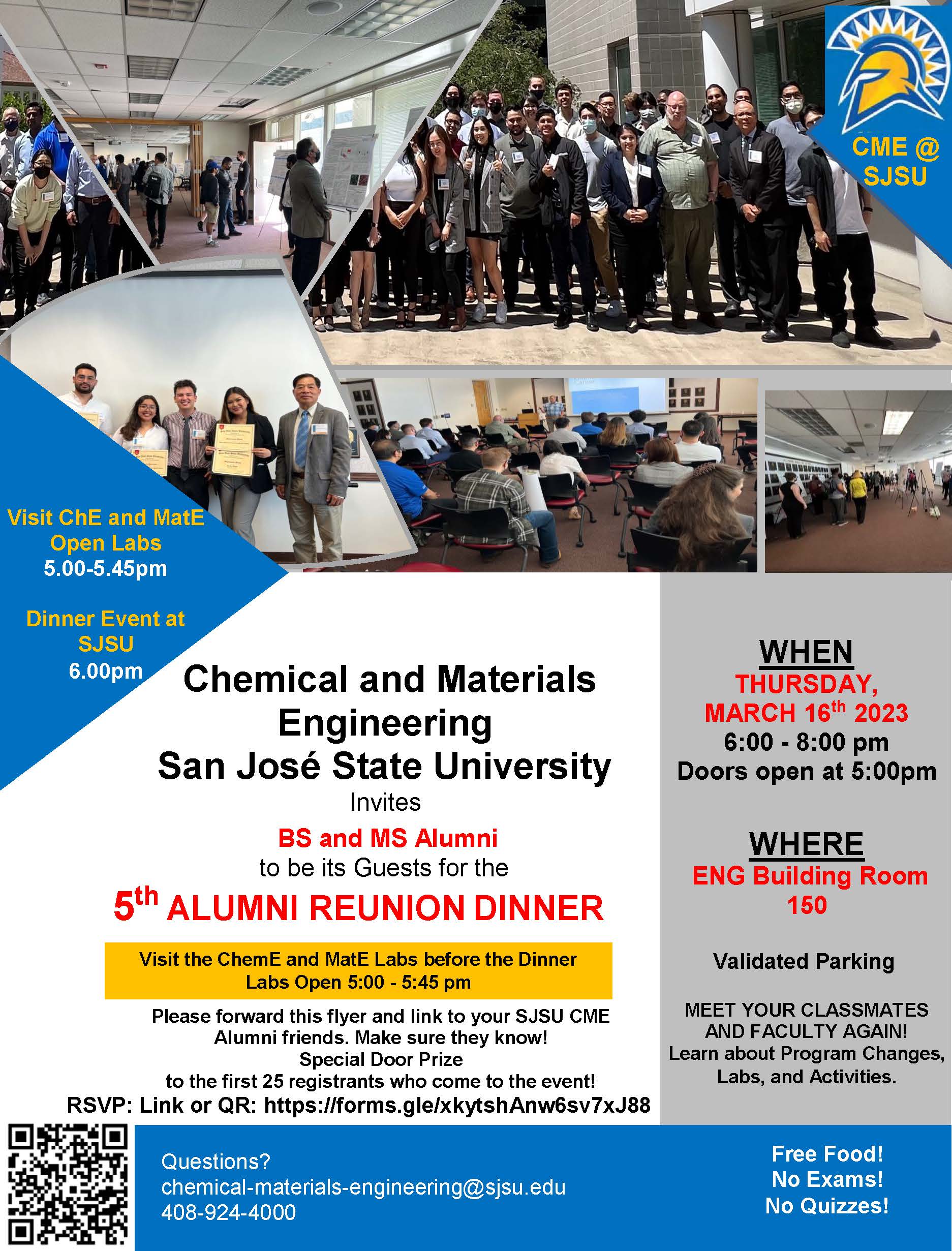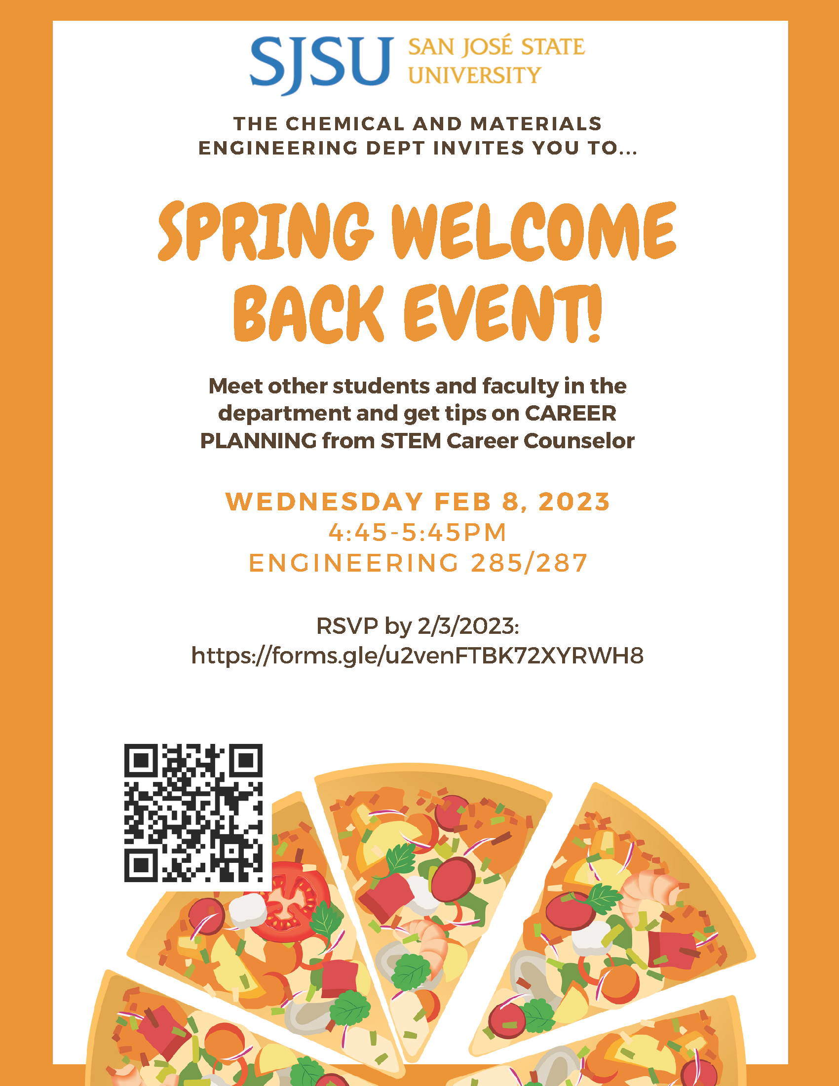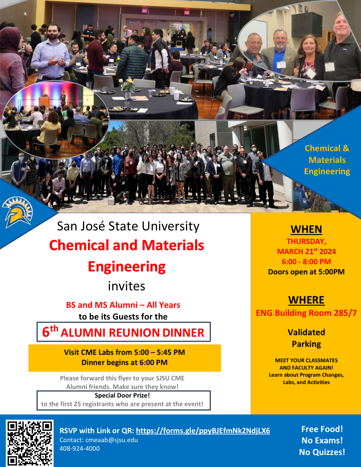 Join us for free food and mingle with other CME students, faculty, and alumni. Come learn about the career paths and get valuable career advice from our panel of ChE and MatE alumni!