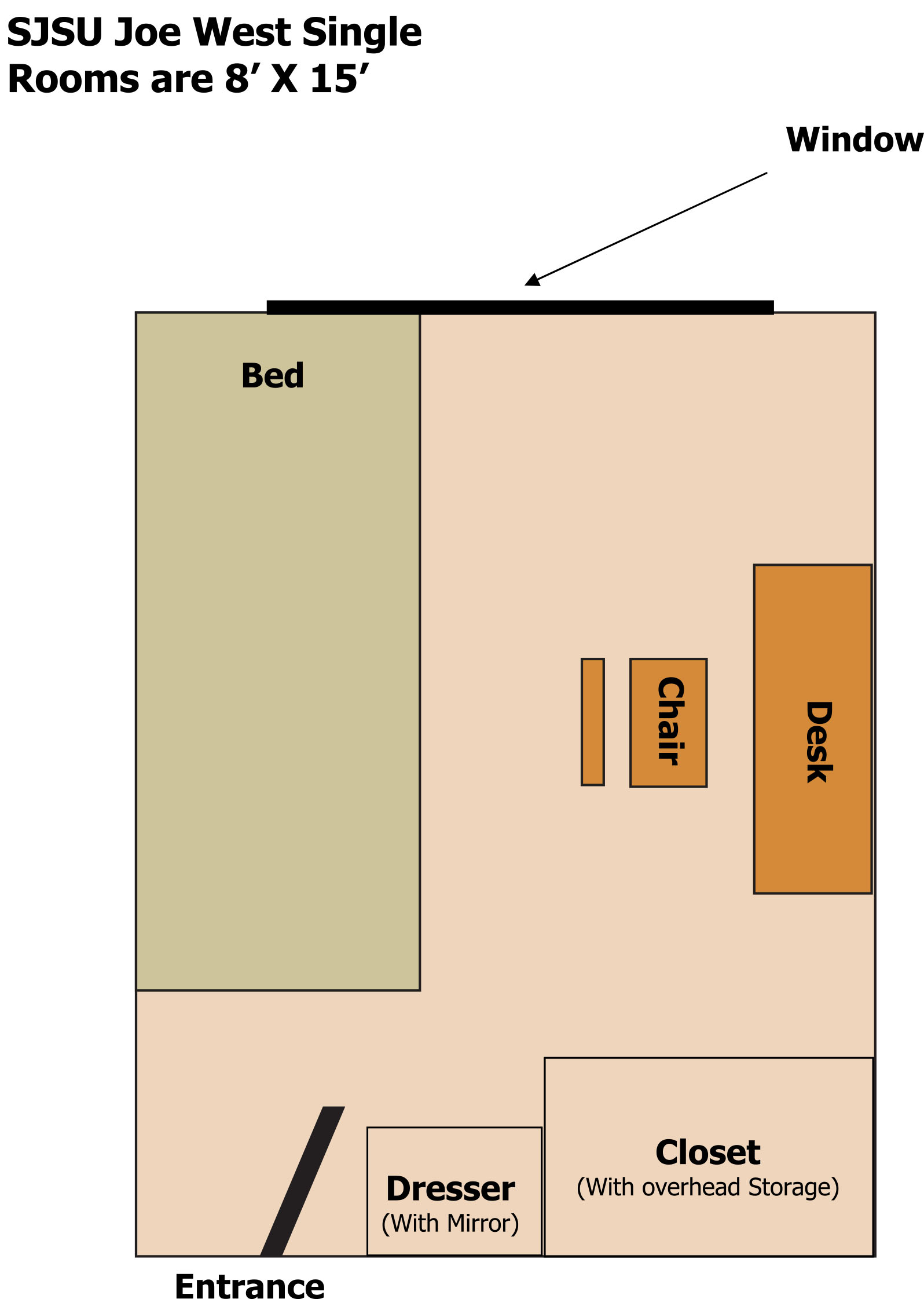 Double occupancy rooms are furnished with two of each of the following: extra long twin beds, desks, chairs, dressers, bookshelves, and closets. Triple rooms are furnished with three of each of the above (only two closets and bookshelves). Each room includes one towel rack, wastebasket, and paper recycling bin. Floors are carpeted, and windows are furnished with drapes.