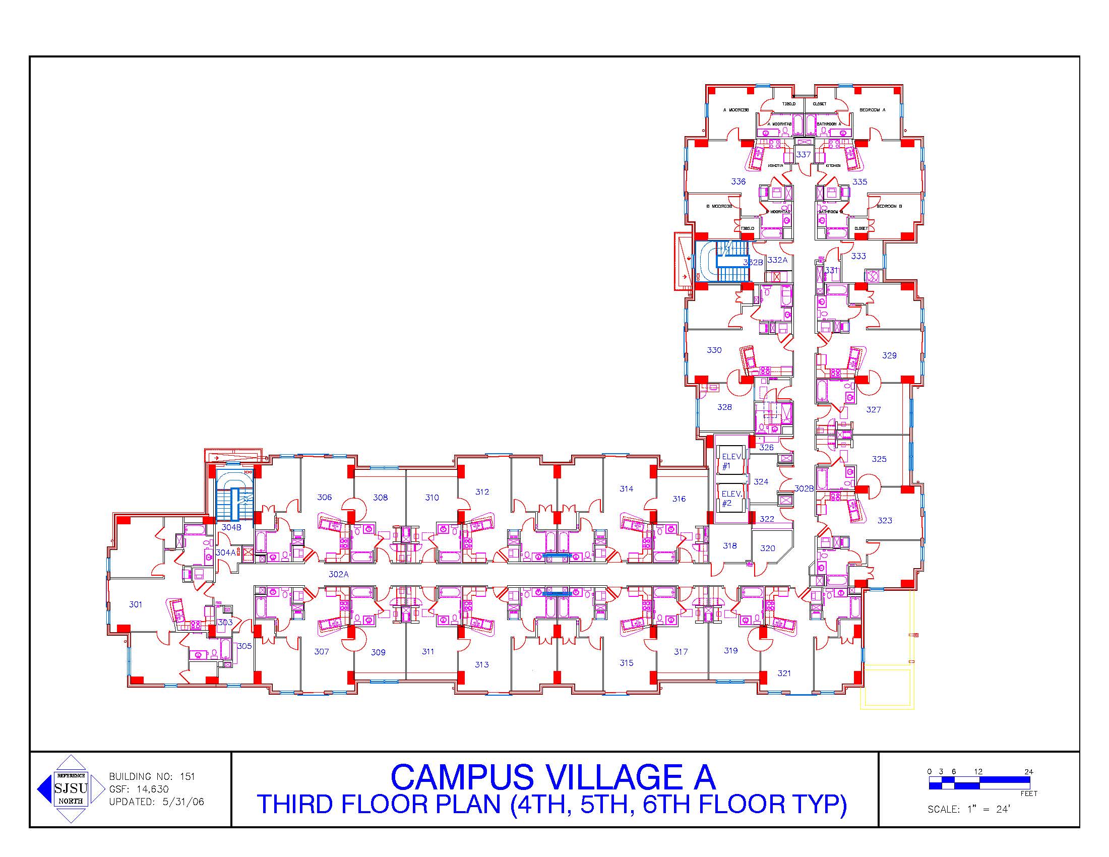 Campus Village Building A (CVA) is an on-campus housing facility for SJSU Faculty, Staff, Graduate, Senior, and Junior Students. It is located in the heart of Campus Village, a vibrant, student centered community in an urban setting. Campus Village is a short walking distance to classes and Downtown San José.
